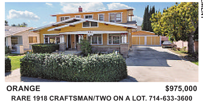 ORANGE $975,000 RARE 1918 CRAFTSMAN/TWO ON A LOT. 714-633-3600