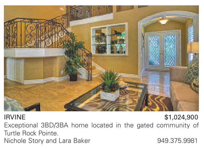 IRVINE $1,024,900 Exceptional 3BD/3BA home located in the gated community of Turtle Rock Pointe. Nichole Story and Lara Baker 949.375.9981