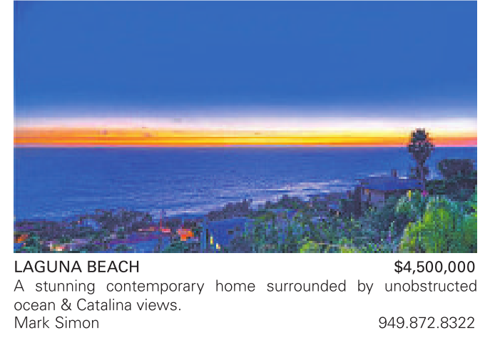 LAGUNA BEACH $4,500,000 A stunning contemporary home surrounded by unobstructed ocean & Catalina views. Mark Simon 949.872.8322