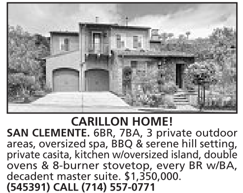 ovens & 8-burner stovetop, every BR w/BA, decadent master suite. $1,350,000. (545391) CALL (714) 557-0771
