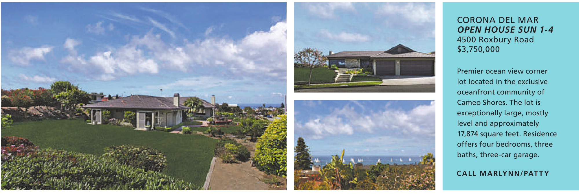CORONA DEL MAR OPEN HOUSE SUN 1-4 4500 Roxbury Road $3,750,000