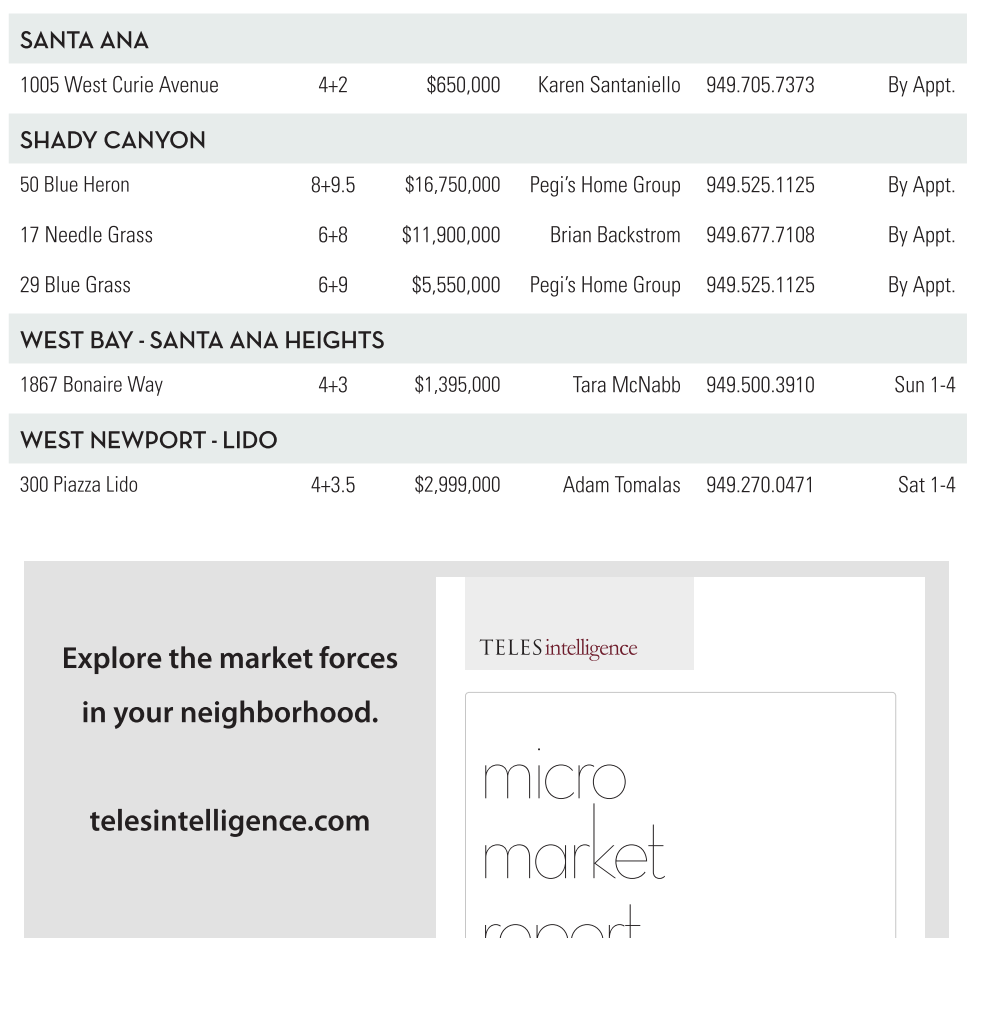 50 Blue Heron 8+9.5 $16,750,000 Pegi’sHome Group 949.525.1125 By Appt.