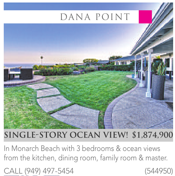 In Monarch Beach with 3 bedrooms & ocean views from the kitchen, dining room, family room & master.