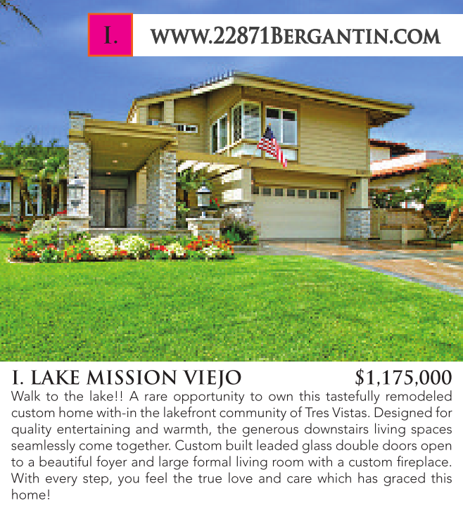 I. LAKE MISSION VIEJO $1,175,000 Walk to the lake!! A rare opportunity to own this tastefully remodeled