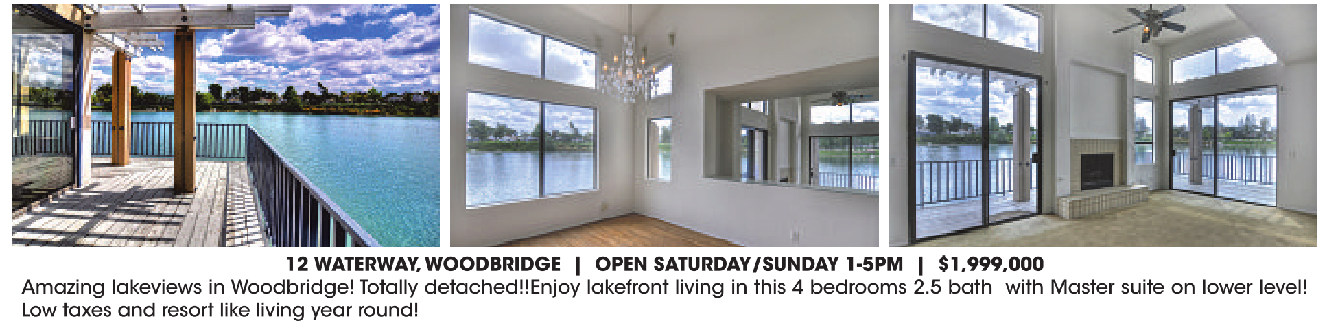 12 WATERWAY, WOODBRIDGE | OPEN SATURDAY/SUNDAY 1-5PM | $1,999,000 Amazing lakeviews in Woodbridge! Totally detached!!Enjoy lakefront living in this 4 bedrooms 2.5 bath with Master suite on lower level! Low taxes and resort like living year round!