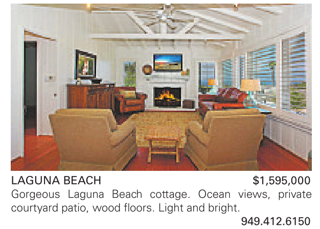 LAGUNA BEACH $1,595,000 Gorgeous Laguna Beach cottage. Ocean views, private courtyard patio, wood floors. Light and bright.