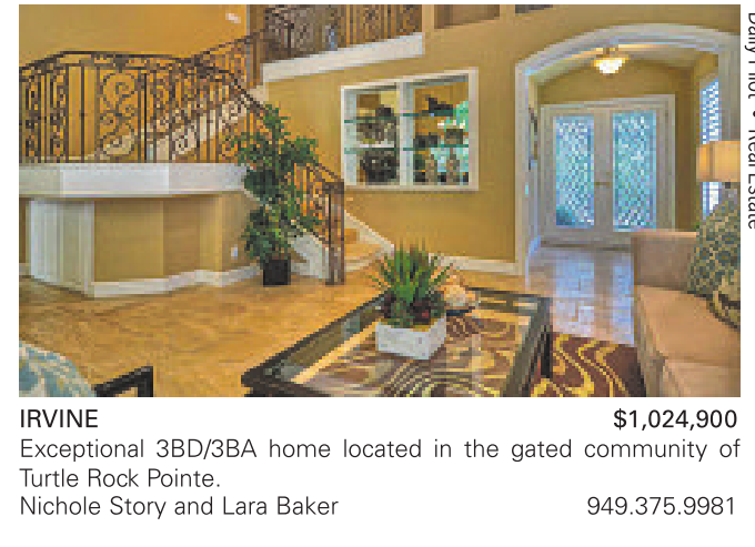IRVINE $1,024,900 Exceptional 3BD/3BA home located in the gated community of Turtle Rock Pointe. Nichole Story and Lara Baker 949.375.9981