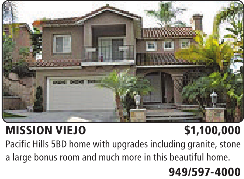 MISSION VIEJO $1,100,000 Pacific Hills5BD homewithupgrades including granite,stone alarge bonusroomand muchmore in this beautifulhome.