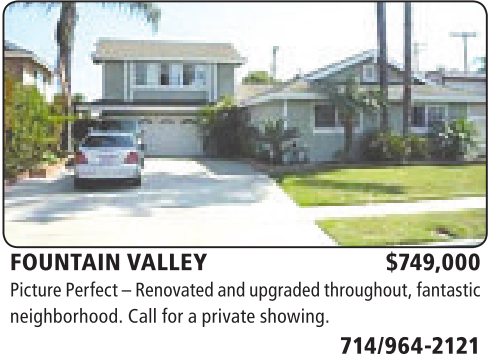 FOUNTAIN VALLEY $749,000 PicturePerfect –Renovatedand upgraded throughout,fantastic neighborhood. Call foraprivateshowing.