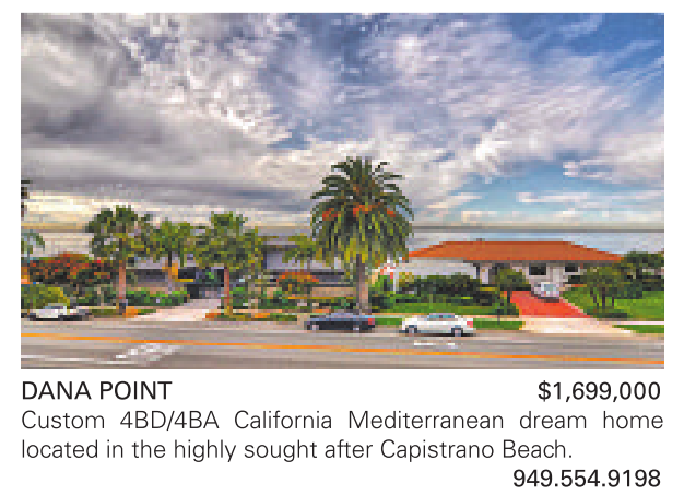 DANA POINT $1,699,000 Custom 4BD/4BA California Mediterranean dream home located in the highly sought after Capistrano Beach.