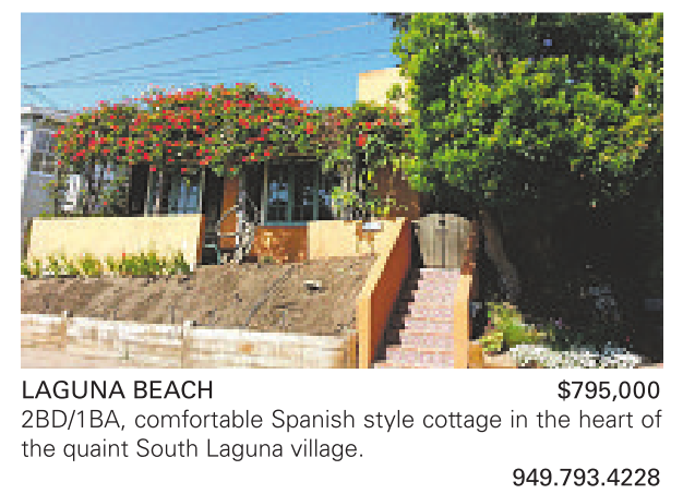 LAGUNA BEACH $795,000 2BD/1BA, comfortable Spanish style cottage in the heart of the quaint South Laguna village.