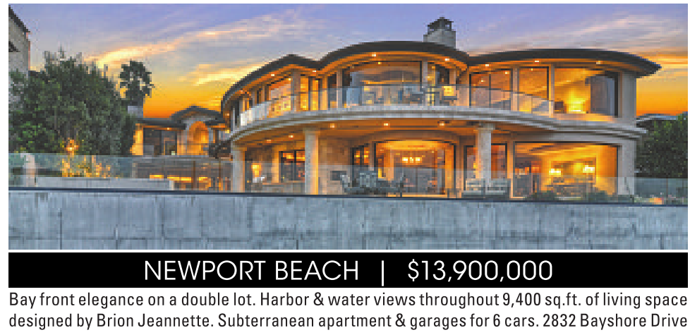 Bayfront eleganceonadoublelot.Harbor&waterviews throughout 9,400sq.ft.ofliving space designedbyBrion Jeannette. Subterranean apartment&garages for6cars. 2832 Bayshore Drive