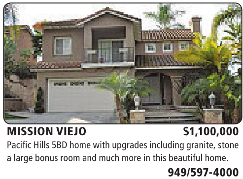 MISSION VIEJO $1,100,000 Pacific Hills5BD homewithupgrades including granite,stone alarge bonusroomand muchmore in this beautifulhome.