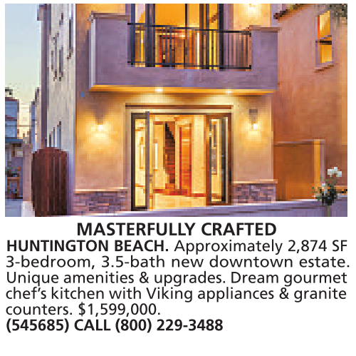 3-bedroom, 3.5-bath new downtown estate. Unique amenities &upgrades. Dream gourmet chef’skitchen with Viking appliances &granite counters. $1,599,000. (545685) CALL (800) 229-3488