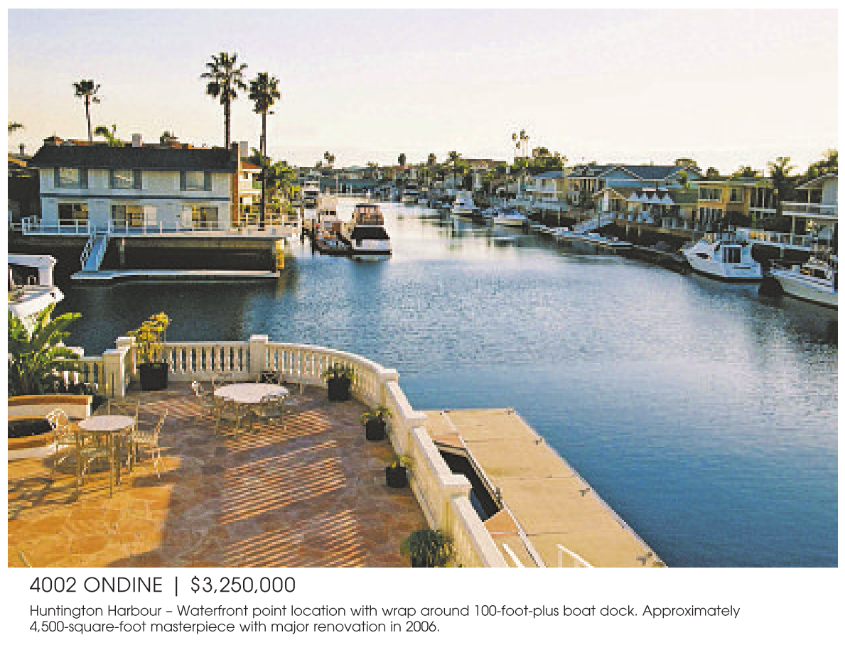 Huntington Harbour – Waterfront point location with wrap around 100-foot-plus boat dock. Approximately 4,500-square-foot masterpiece with major renovation in 2006.