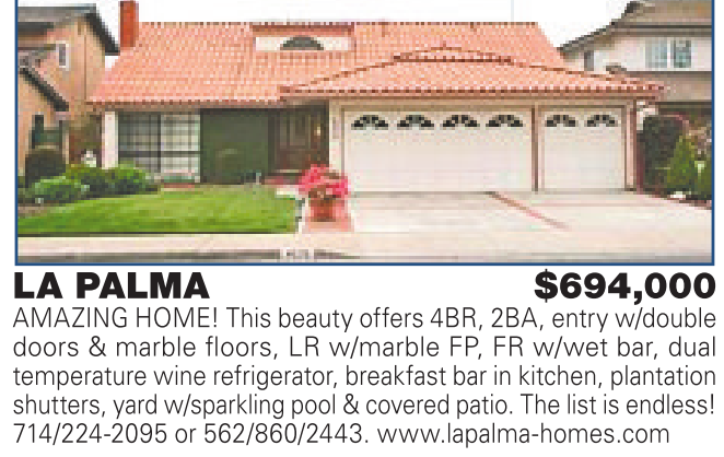 shutters, yardw/sparklingpool&covered patio. Thelistisendless! 714/224-2095 or 562/860/2443. www.lapalma-homes.com