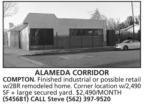 SF + large secured yard. $2,490/MONTH (545681) CALL Steve (562) 397-9520