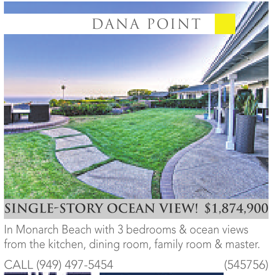 In Monarch Beach with 3 bedrooms & ocean views from the kitchen, dining room, family room & master.