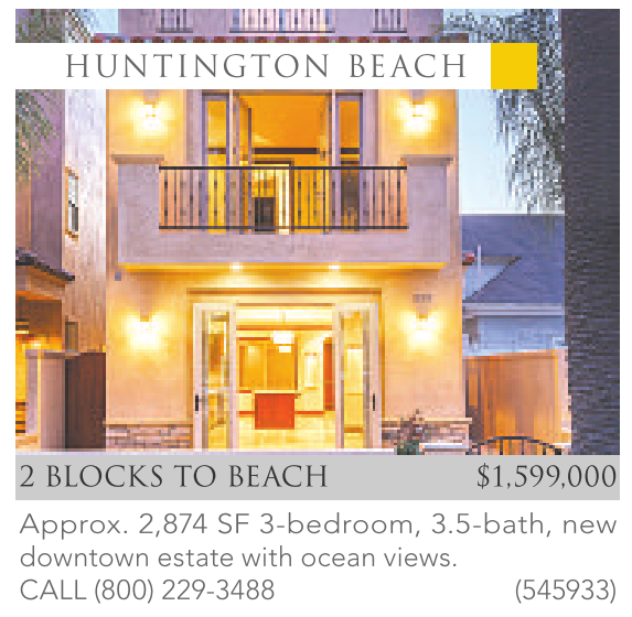 Approx. 2,874 SF 3-bedroom, 3.5-bath, new downtown estate with ocean views. CALL (800) 229-3488 (545933)