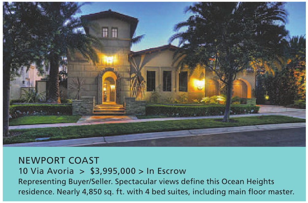 NEWPORT COAST 10 Via Avoria > $3,995,000 > In Escrow