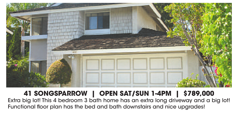 41 SONGSPARROW | OPEN SAT/SUN 1-4PM | $789,000 Extra big lot! This 4 bedroom 3 bath home has an extra long driveway and a big lot! Functional floor plan has the bed and bath downstairs and nice upgrades!