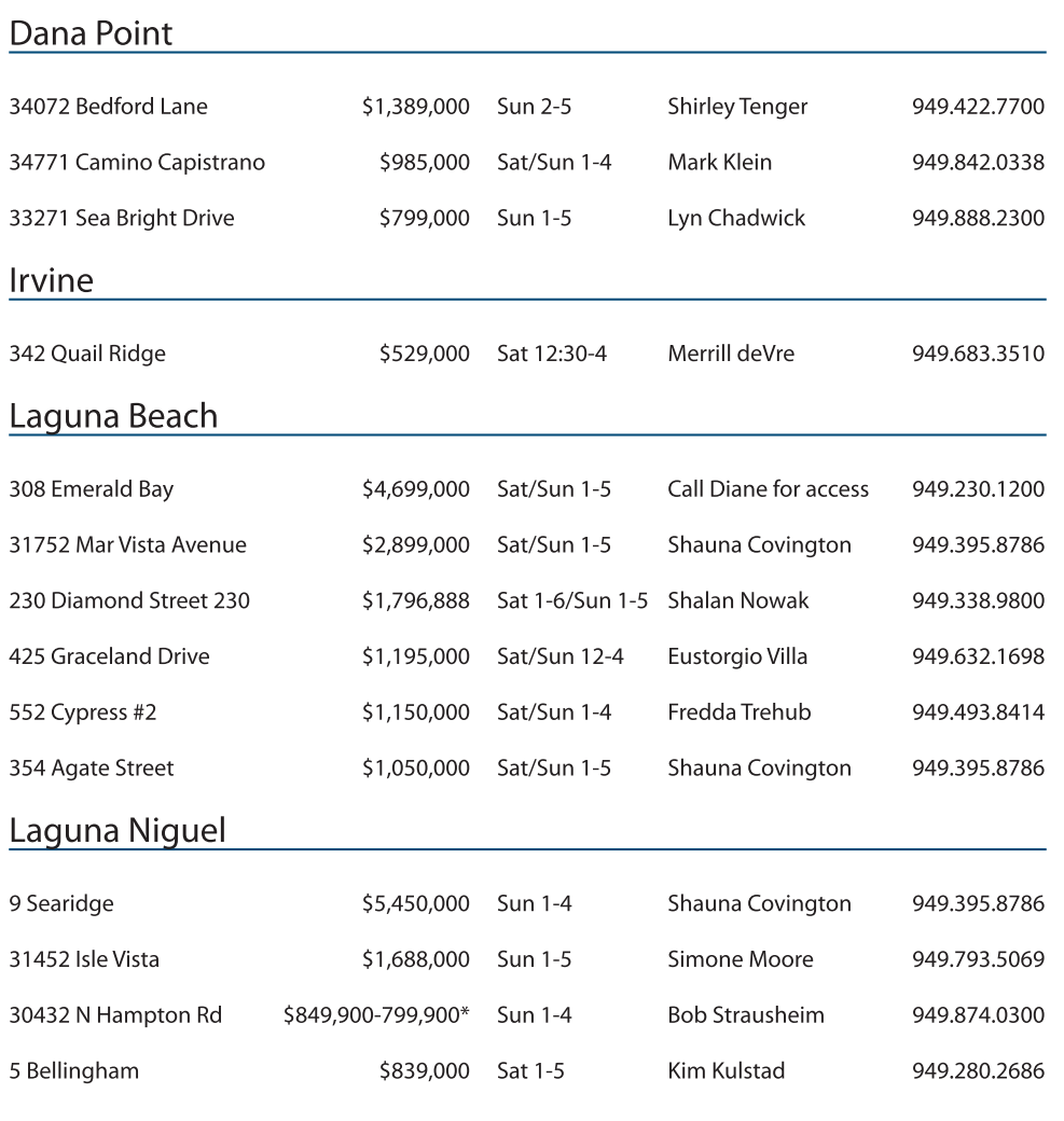 34771 Camino Capistrano $985,000 Sat/Sun 1-4 Mark Klein 949.842.0338