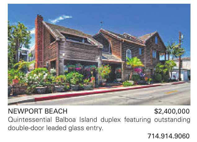 NEWPORT BEACH $2,400,000 Quintessential Balboa Island duplex featuring outstanding double-door leaded glass entry.
