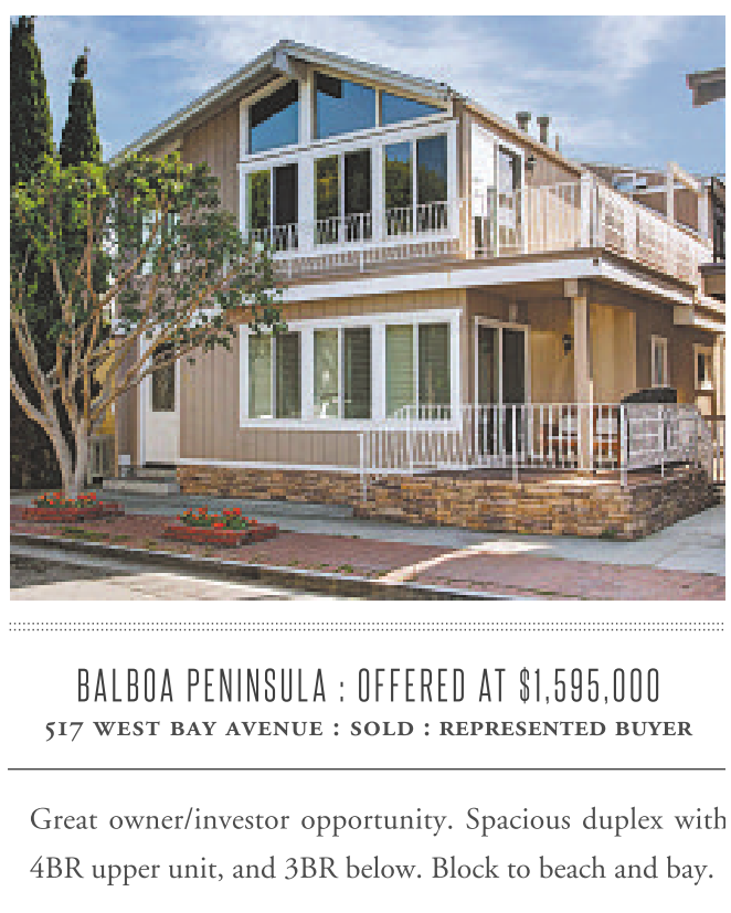 BALBOA PENINSULA : OFFERED AT $1,595,000