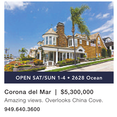 Corona del Mar | $5,300,000 Amazing views. Overlooks China Cove. 949.640.3600