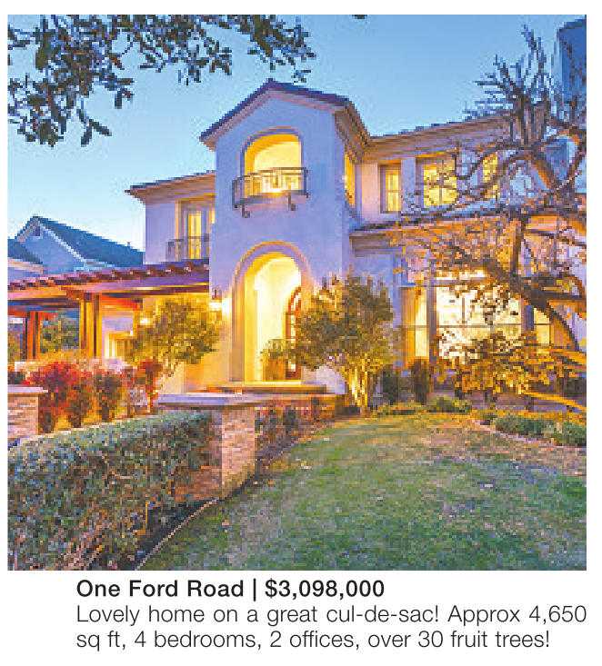 One Ford Road | $3,098,000 Lovely home on a great cul-de-sac! Approx 4,650 sq ft, 4 bedrooms, 2 offices, over 30 fruit trees!