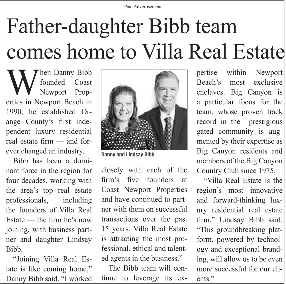 Bibb has been a dominant force in the region for four decades, working with the area’s top real estate professionals, including the founders of Villa Real Estate — the firm he’s now joining, with business partner and daughter Lindsay Bibb.