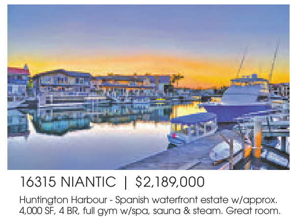 Huntington Harbour -Spanish waterfront estate w/approx. 4,000 SF, 4BR, full gym w/spa, sauna &steam. Great room.