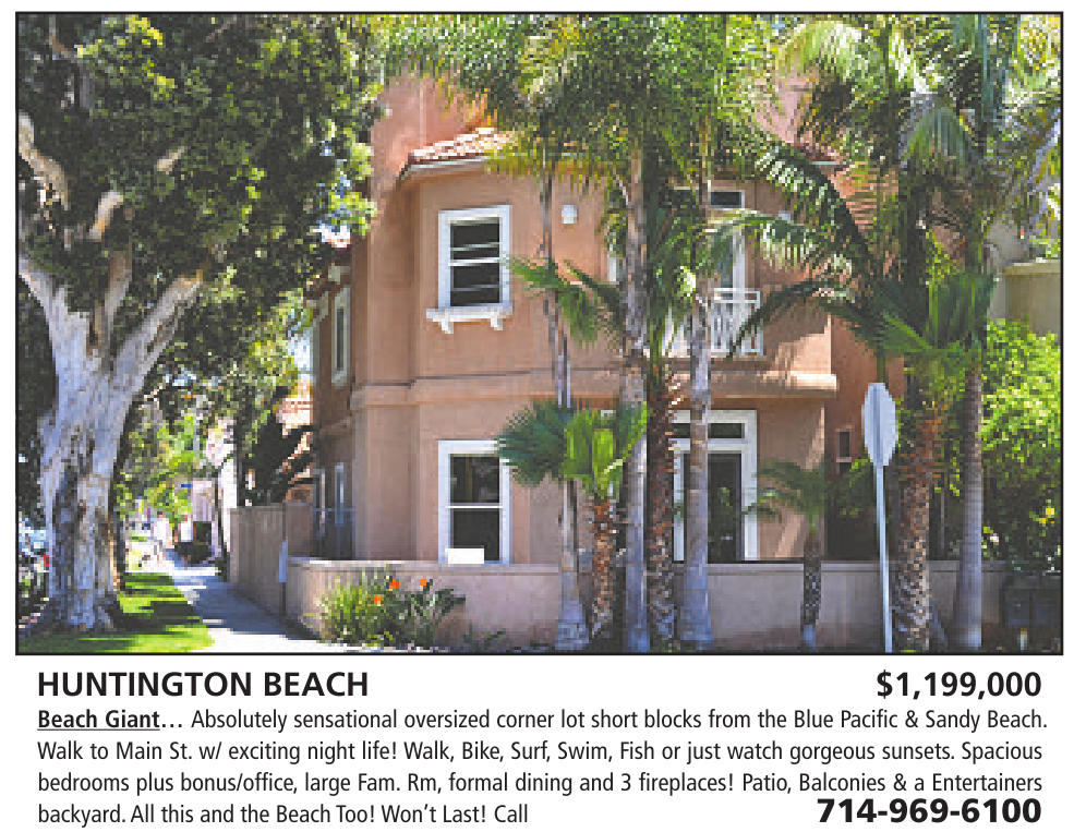 Beach Giant… Absolutely sensational oversized corner lot short blocks from the Blue Pacific & Sandy Beach. Walk to Main St. w/ exciting night life! Walk, Bike, Surf,Swim, Fish or just watch gorgeous sunsets.Spacious bedrooms plus bonus/office,large Fam. Rm, formal dining and 3 fireplaces! Patio,Balconies & a Entertainers backyard.All this and the Beach Too! Won’t Last! Call 714-969-6100