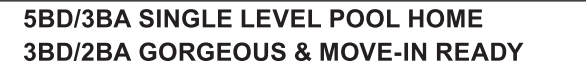 5BD/3BA SINGLE LEVEL POOL HOME 3BD/2BA GORGEOUS & MOVE-IN READY