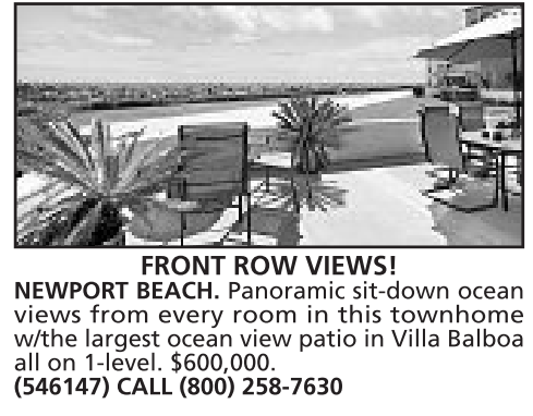 w/the largest ocean view patio in Villa Balboa all on 1-level. $600,000. (546147) CALL (800) 258-7630