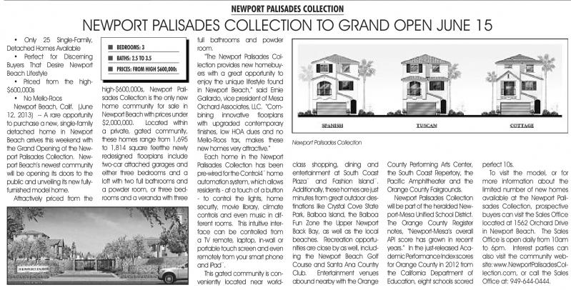 Newport Palisades Collection will be part of the heralded Newport-Mesa unified School District.