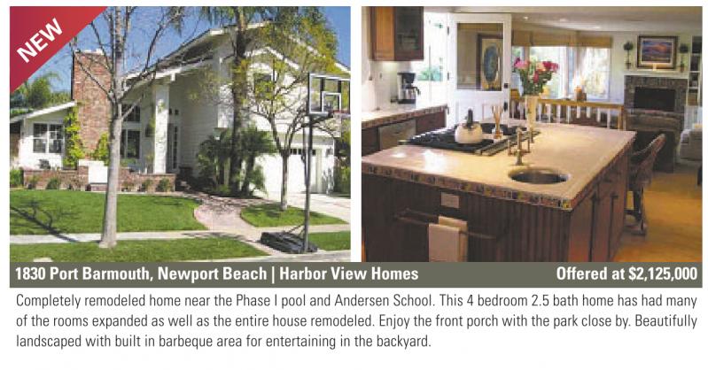 1830 Port Barmouth, Newport Beach | Harbor View Homes Offered at $2,125,000 Completely remodeled home near the Phase I pool and Andersen School. This 4 bedroom 2.5 bath home has had many of the rooms expanded as well as the entire house remodeled. Enjoy the front porch with the park close by. Beautifully landscaped with built in barbeque area for entertaining in the backyard.