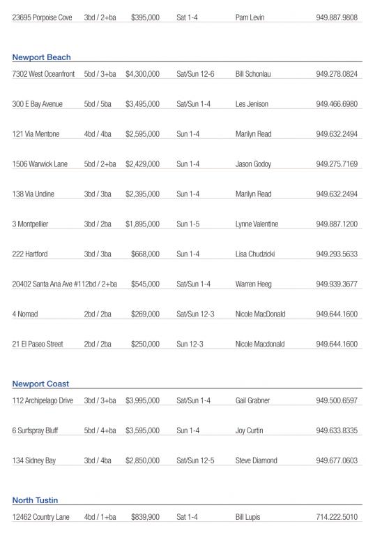 112 Archipelago Drive 3bd /3+ba $3,995,000 Sat/Sun 1-4 Gail Grabner 949.500.6597