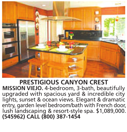 PRESTIGIOUS CANYON CREST MISSION VIEJO. 4-bedroom, 3-bath, beautifully upgraded with spacious yard & incredible city lights, sunset &ocean views. Elegant &dramatic