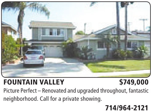 FOUNTAIN VALLEY $749,000 PicturePerfect –Renovatedand upgraded throughout,fantastic neighborhood. Call foraprivateshowing.