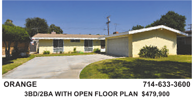ORANGE 714-633-3600 3BD/2BA WITH OPEN FLOOR PLAN $479,900