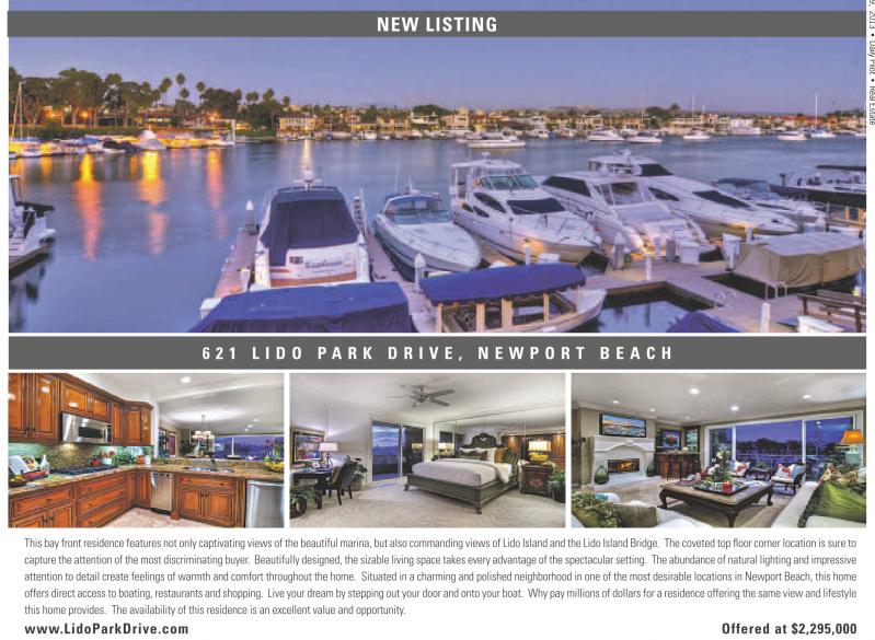 This bay front residence features not only captivating views of the beautiful marina, but also commanding views of Lido Island and the Lido Island Bridge. The coveted top floor corner location is sure to capture the attention of the most discriminating buyer. Beautifully designed, the sizable living space takes every advantage of the spectacular setting. The abundance of natural lighting and impressive attention to detail create feelings of warmth and comfort throughout the home. Situated in acharming and polished neighborhood in one of the most desirable locations in Newport Beach, this home offers direct access to boating, restaurants and shopping. Live your dream by stepping out your door and onto your boat. Why pay millions of dollars for aresidence offering the same view and lifestyle this home provides. The availability of this residence is an excellent value and opportunity. www.LidoParkDrive.com Offered at $2,295,000