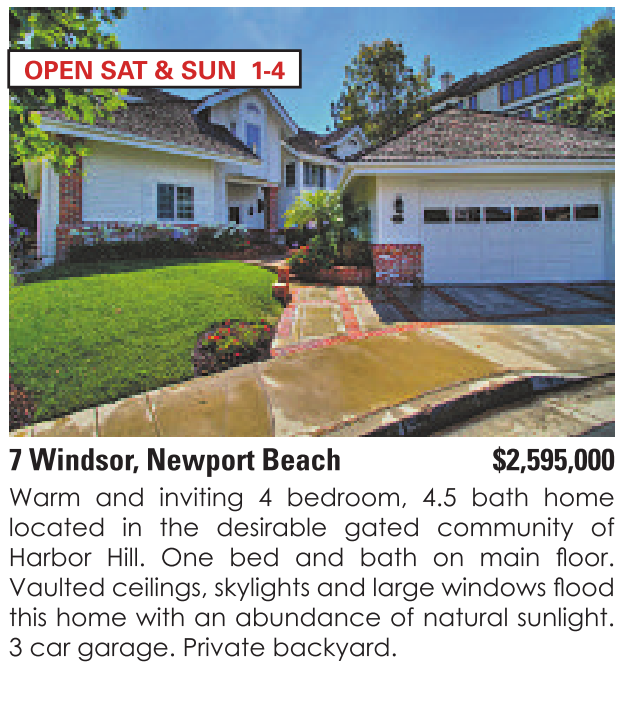 7 Windsor, Newport Beach $2,595,000 located in the desirable gated community of this home with an abundance of natural sunlight.