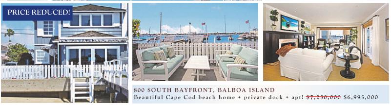 800 SOUTH BAYFRONT, BALBOA ISLAND Beautiful Cape Cod beach home + private dock + apt! $7,250,000 $6,995,000