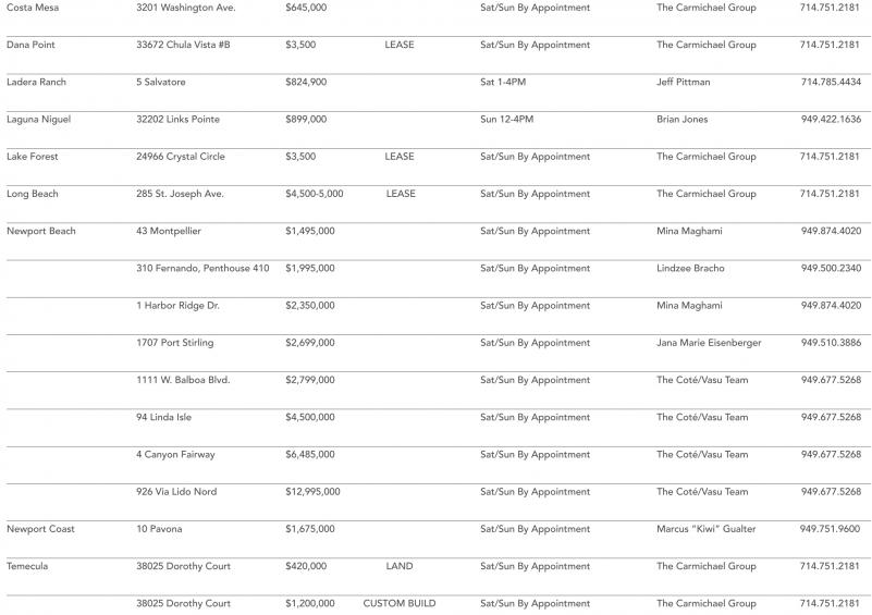Newport Coast 10 Pavona $1,675,000 Sat/Sun By Appointment Marcus “Kiwi” Gualter 949.751.9600
