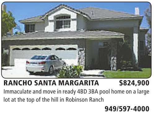 RANCHO SANTA MARGARITA $824,900 Immaculate andmove in ready4BD 3BApoolhome on alarge lotatthe topofthe hill in Robinson Ranch 949/597-4000