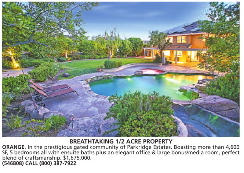 BREATHTAKING 1/2 ACRE PROPERTY ORANGE. In the prestigious gated community of Parkridge Estates. Boasting more than 4,600 SF, 5 bedrooms all with ensuite baths plus an elegant office & large bonus/media room, perfect blend of craftsmanship. $1,675,000. (546808) CALL (800) 387-7922