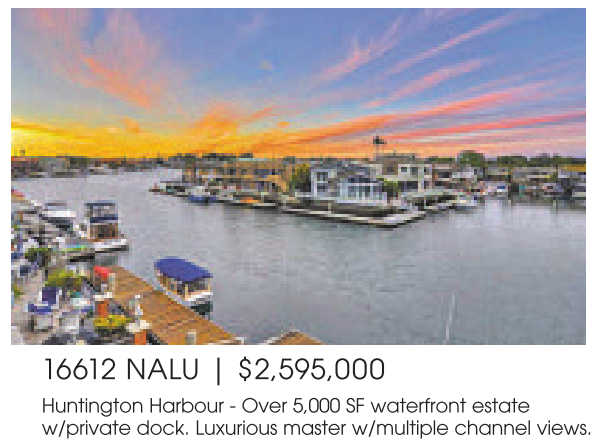 Huntington Harbour -Over 5,000 SF waterfront estate w/private dock. Luxurious master w/multiple channel views.