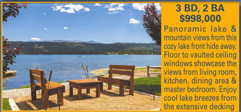 Panoramic lake & mountain views from this cozy lakefront hide away. Floor to vaulted ceiling windows showcase the views from living room, kitchen, dining area & master bedroom. Enjoy cool lake breezes from the extensive decking