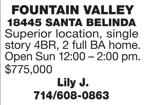 Superior location, single story 4BR, 2 full BA home. Open Sun 12:00 – 2:00 pm. $775,000 Lily J.